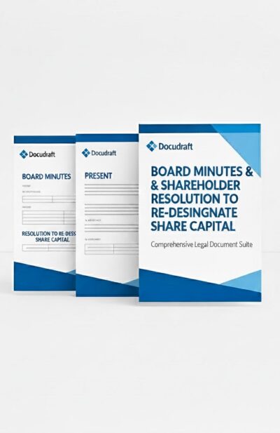 These board minutes and shareholder resolutions enable a company to re-designate its authorised and issued share capital. These documents come complete with all the instructions and guidance necessary to enable you to make the required re-designations.